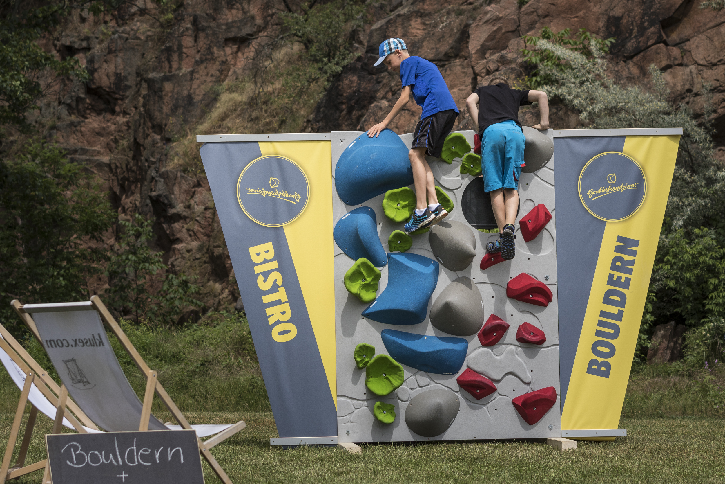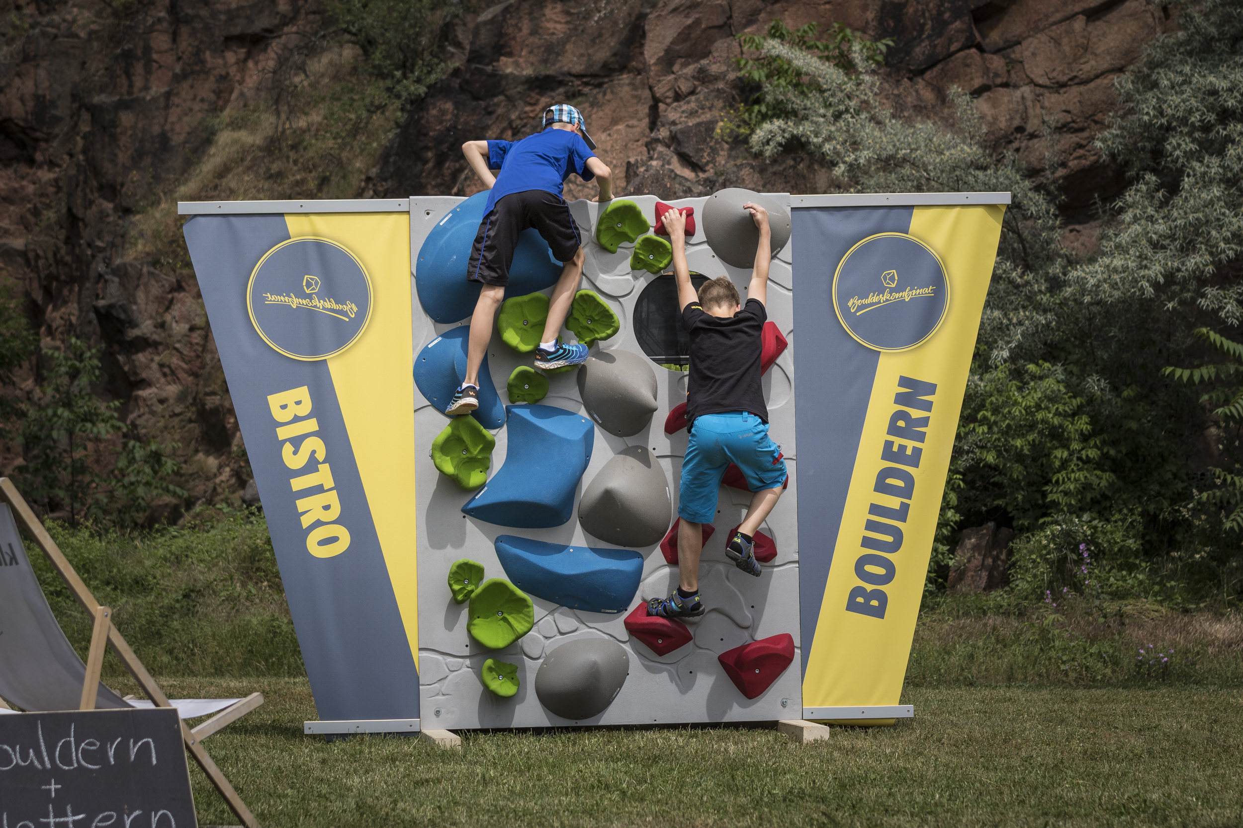 Beim Bouldern handelt es sich um das Klettern in Absprunghöhe, was die zu kletternden Routen, im Vergleich zum Seilklettern, wesentlich kürzer macht. Gesichert werden die Boulder*innen dabei nicht mit einem Seil, sondern durch die Verwendung eines Crashpads. Ein Crashpad ist eine speziell für diese Sportart hergestellte, mobile Matte, die stets unter der bouldernden Person platziert wird. In Indoor-Boulderhallen ist die Verwendung von Crashpads allerdings überflüssig, da diese mit einer dicken Schaumstoffmatte ausgelegt sind. Ähnlich verhält es sich auch an künstlichen Außen-Boulderanlagen, wie z.B. in Halle am Thüringer Bahnhof, welche mit sogenanntem "Fallschutz-Kies" ausgestattet sind. Das Bouldern ist der pure Adrenalin-Kick und aktiviert zudem deine gesamte Körpermuskulatur.