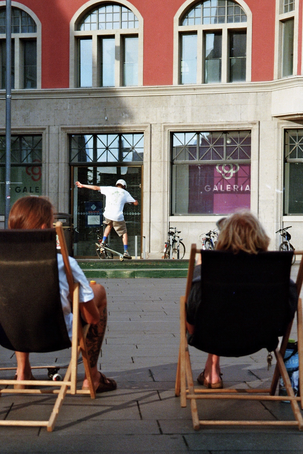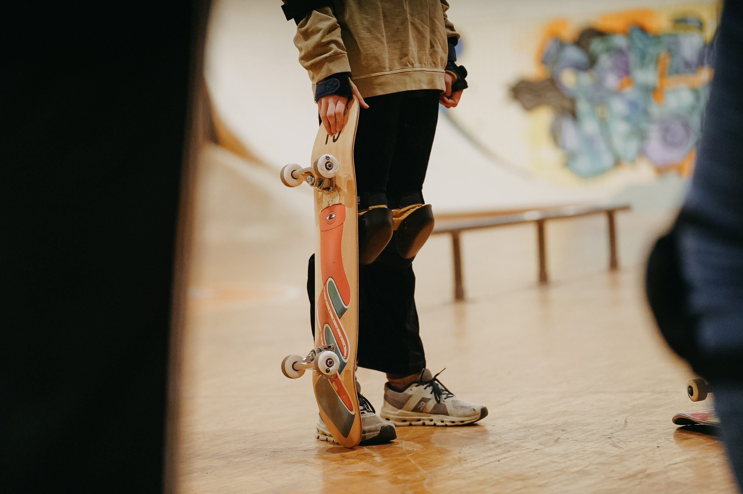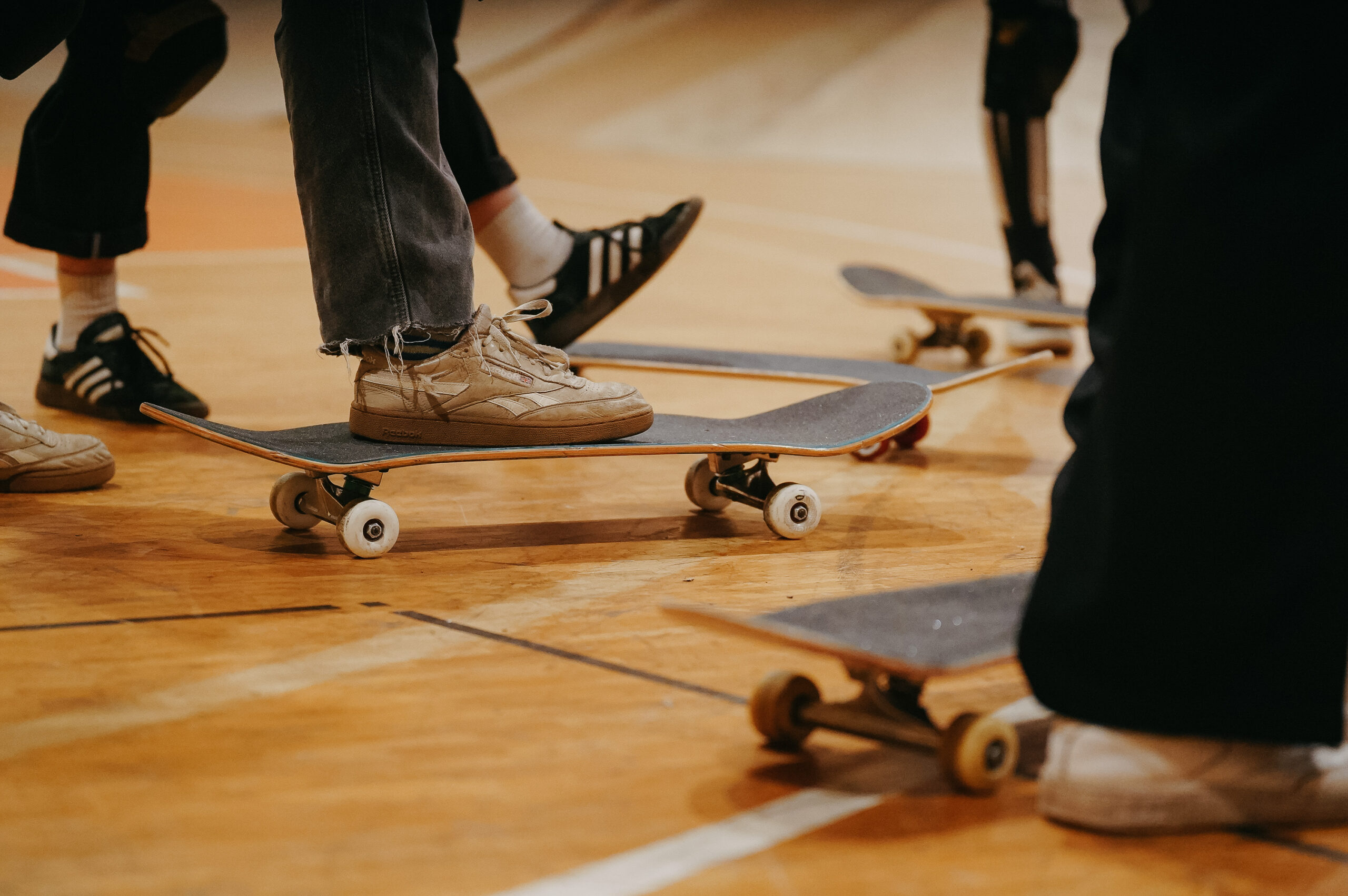 Skateboards, in deutscher Bezeichnung „Rollbretter“ genannt, bestehen aus einem mehrschichtigen Holzbrett. Unter dieses Brett sind zwei Achsen mit jeweils 2 Rollen montiert. Mit dem Skateboard können unzählige Tricks vollführt werden. Auf dem Skatepark können beispielsweise Rampen für Sprünge genutzt werden. Im städtischen Raum dienen z.B. Treppenstufen, Geländer oder Steinkanten dazu, Sprünge, Slides oder Grinds (das Entlangrutschen an Gegenständen mit dem Skateboard) zu üben. Das Skaten ist seit der Entstehung an der Westküste der USA ein Paradebeispiel für die Nutzung städtischer Freiräume durch sport- und bewegungsbegeisterte Menschen.